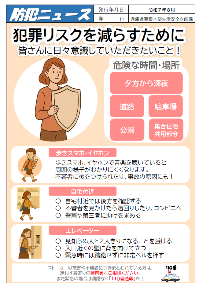 防犯意識を高めるために兵庫県警察安全安心アプリ「ひょうご防犯ネット+(プラス)」を紹介させていただきます。